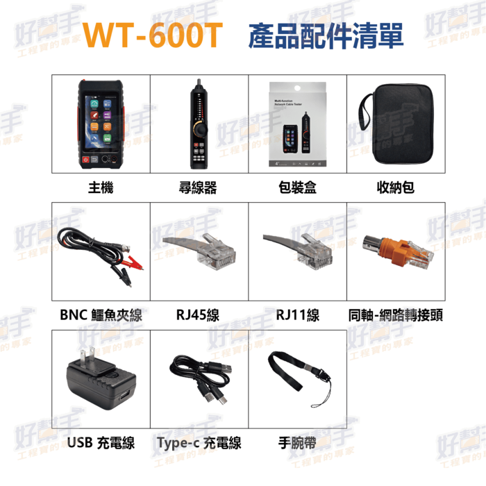 - UTP 網線通斷/排序/長度測試,距離可達 3000 米。