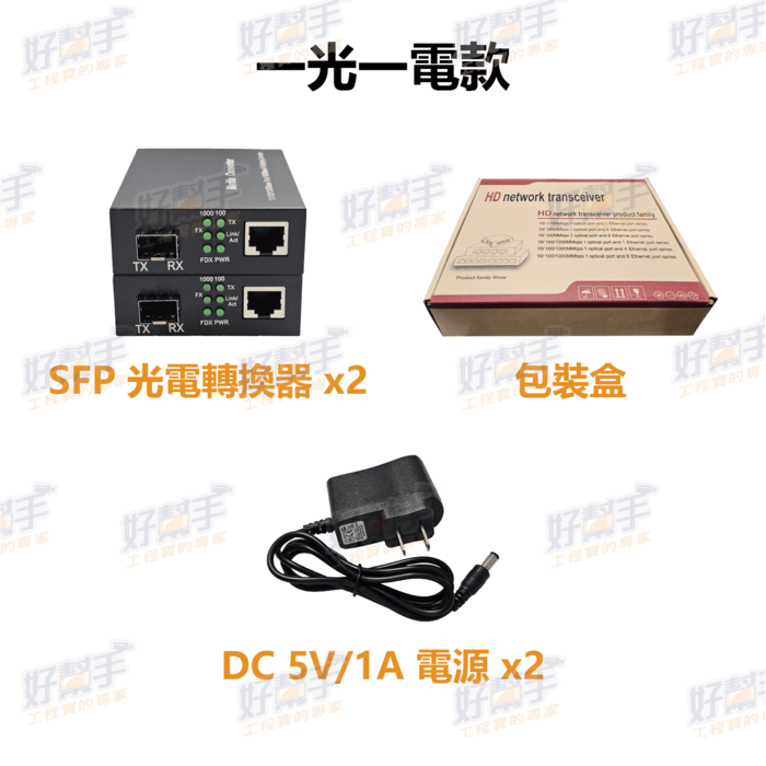 - 可將 1 路網路訊號透過 SFP 光纖接口傳輸。