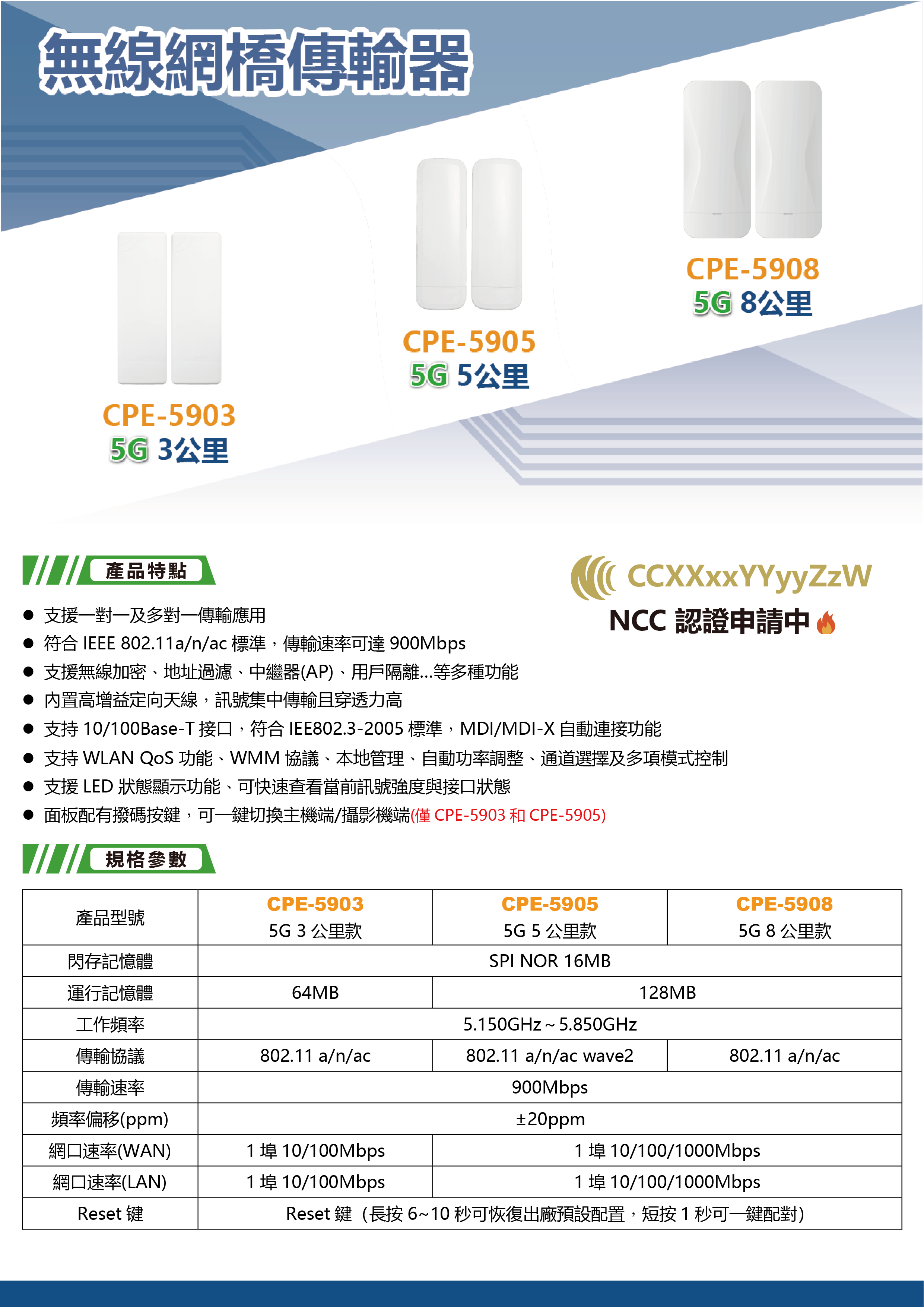 - 符合IEEE 802.11a/n/ac標準,傳輸速率可達900Mbps。