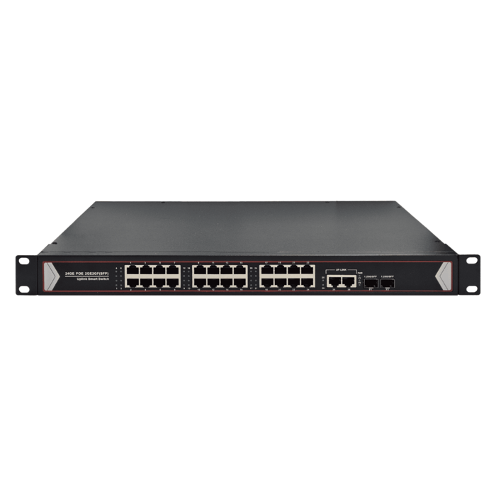 24埠 千兆款 PoE++ AI數顯交換機(24+2埠 1000M+2埠 光模組)