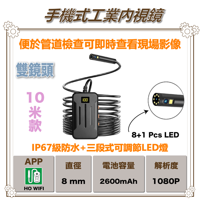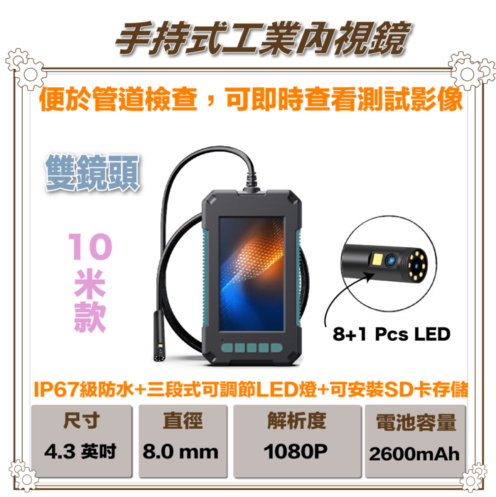 雙鏡頭手持式工業內視鏡(10米)