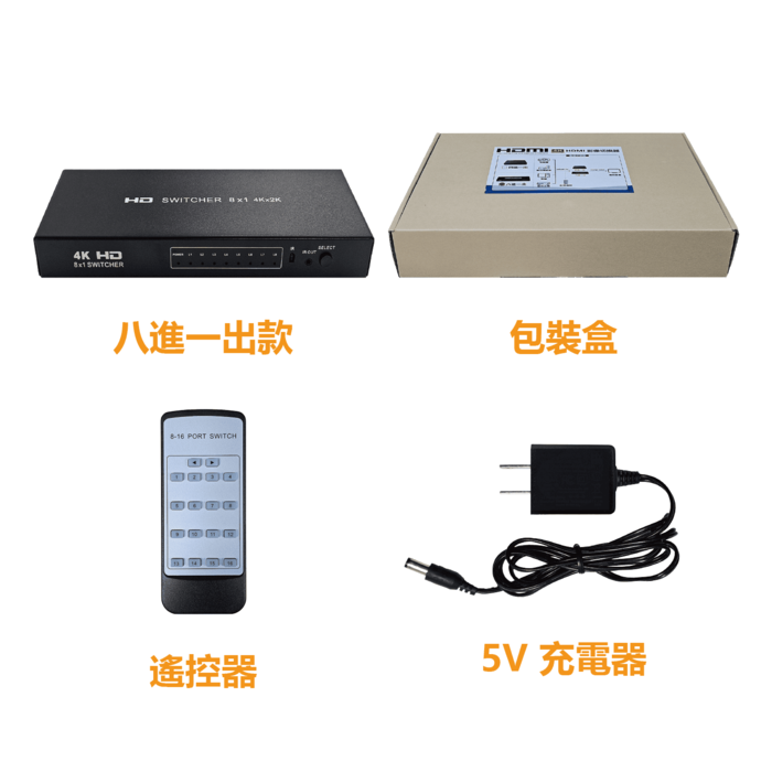 可將八路HDMI輸入訊號切換成一路HDMI輸出。