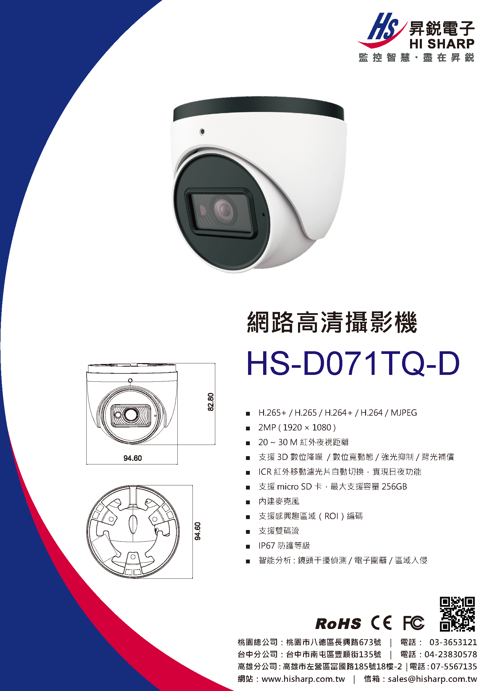 HS-D071TQ-D(2MP_紅外半球型)產品規格書