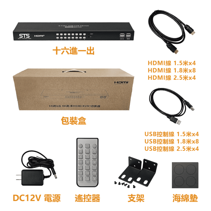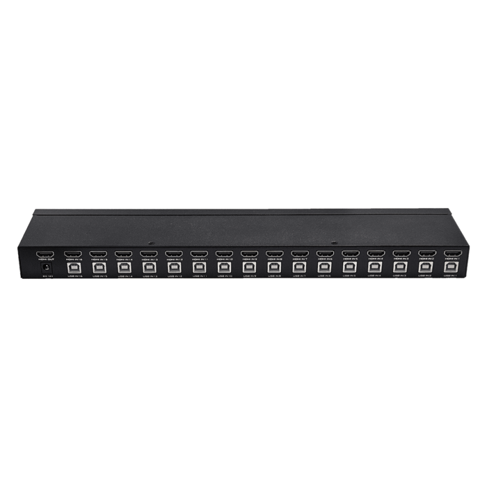 將十六台(16x1)電腦主機共用一套螢幕、鍵盤及滑鼠自由同步切換。