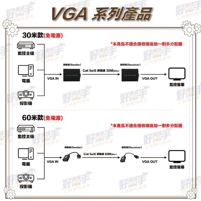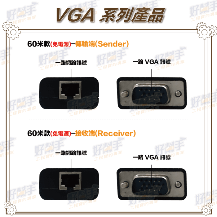 VGA 60米 網路延長器1080P高清 / 抗干擾設計 / 即插即用