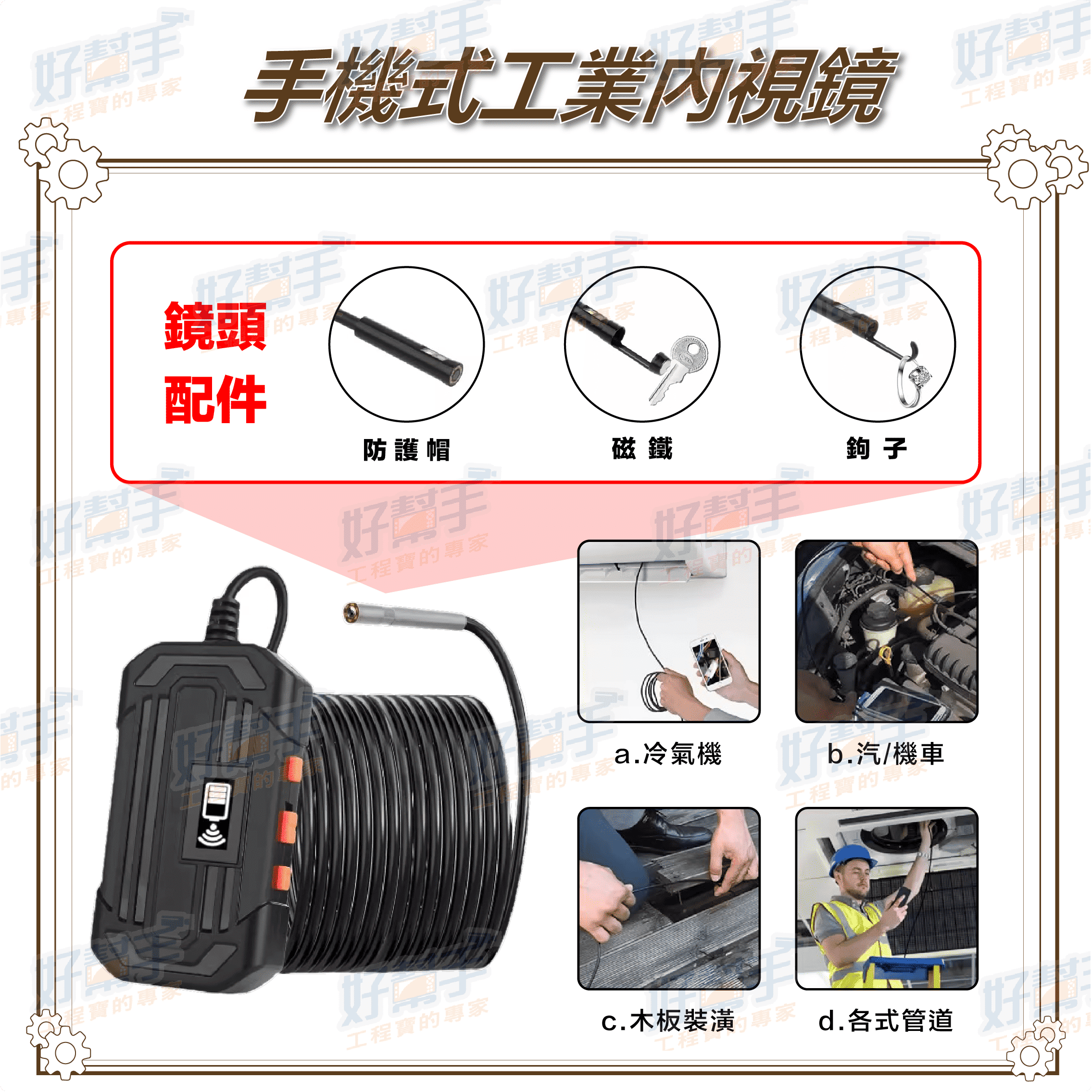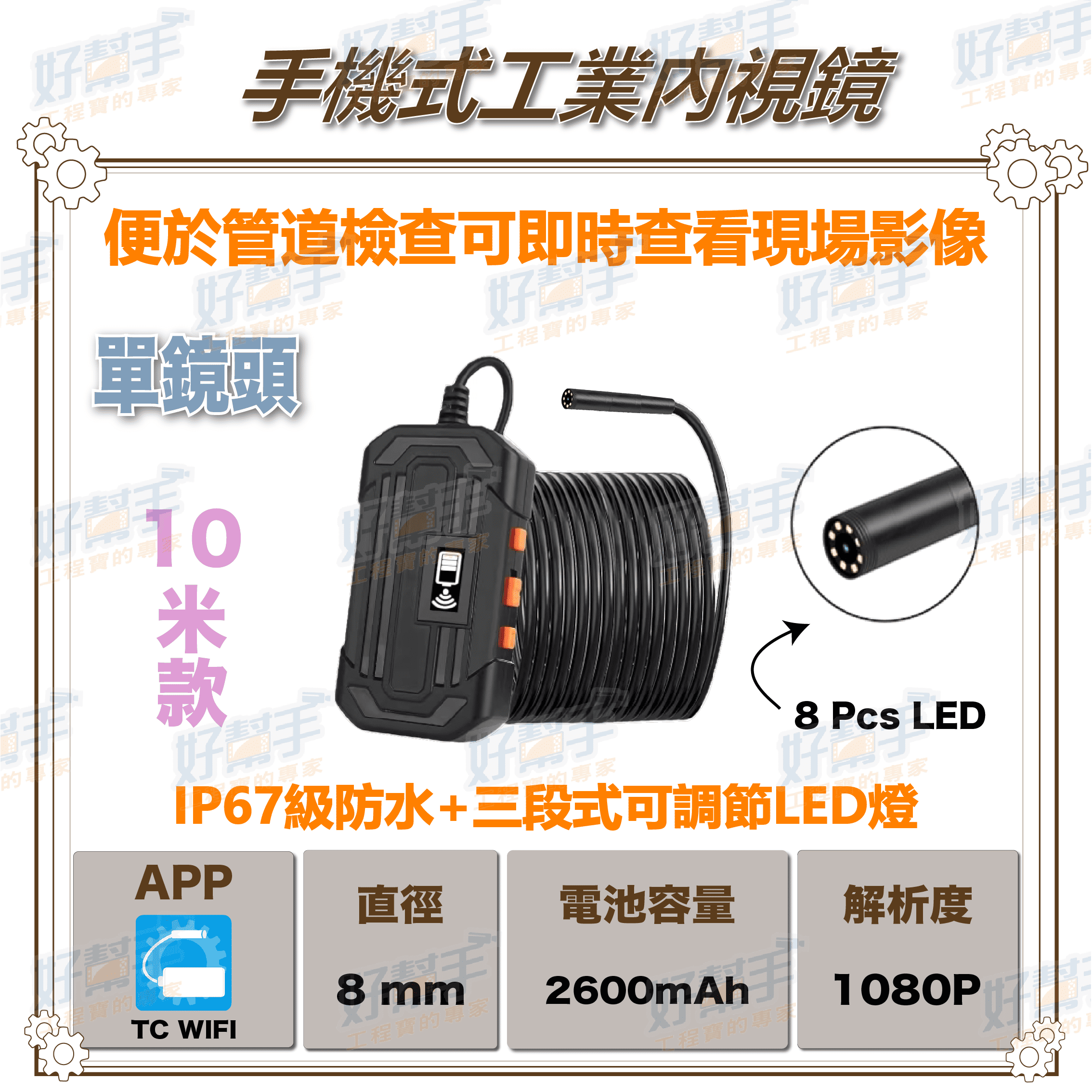直徑 8mm 高靈敏度防水鏡頭,圖像品質清晰,適用於不同的工作環境