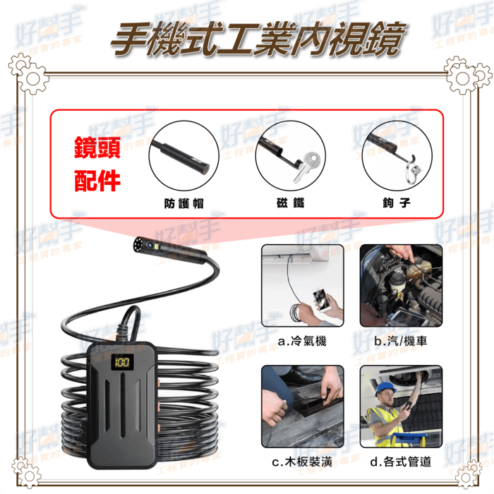 直徑 8mm 高靈敏度防水鏡頭,圖像品質清晰,適用於不同的工作環境