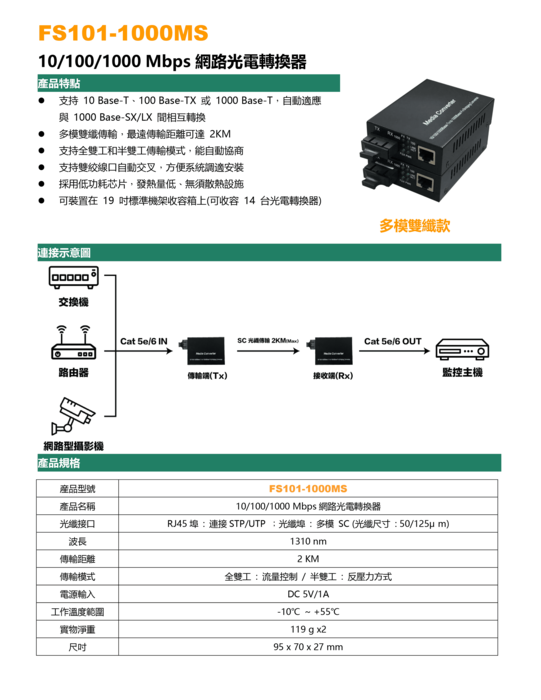 FS101-1000MS_(網路光電轉換器多模雙纖款)產品規格書