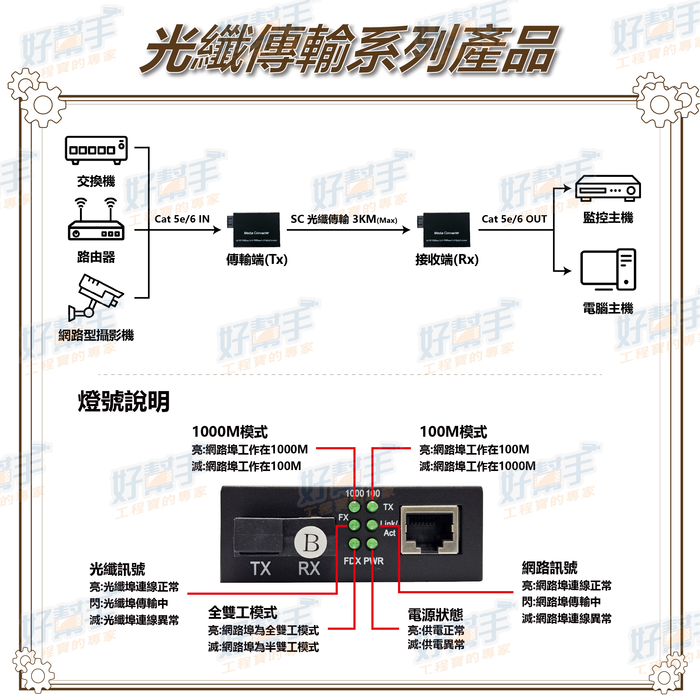 10/100/1000 Mbps 網路光電轉換器(3公里款)