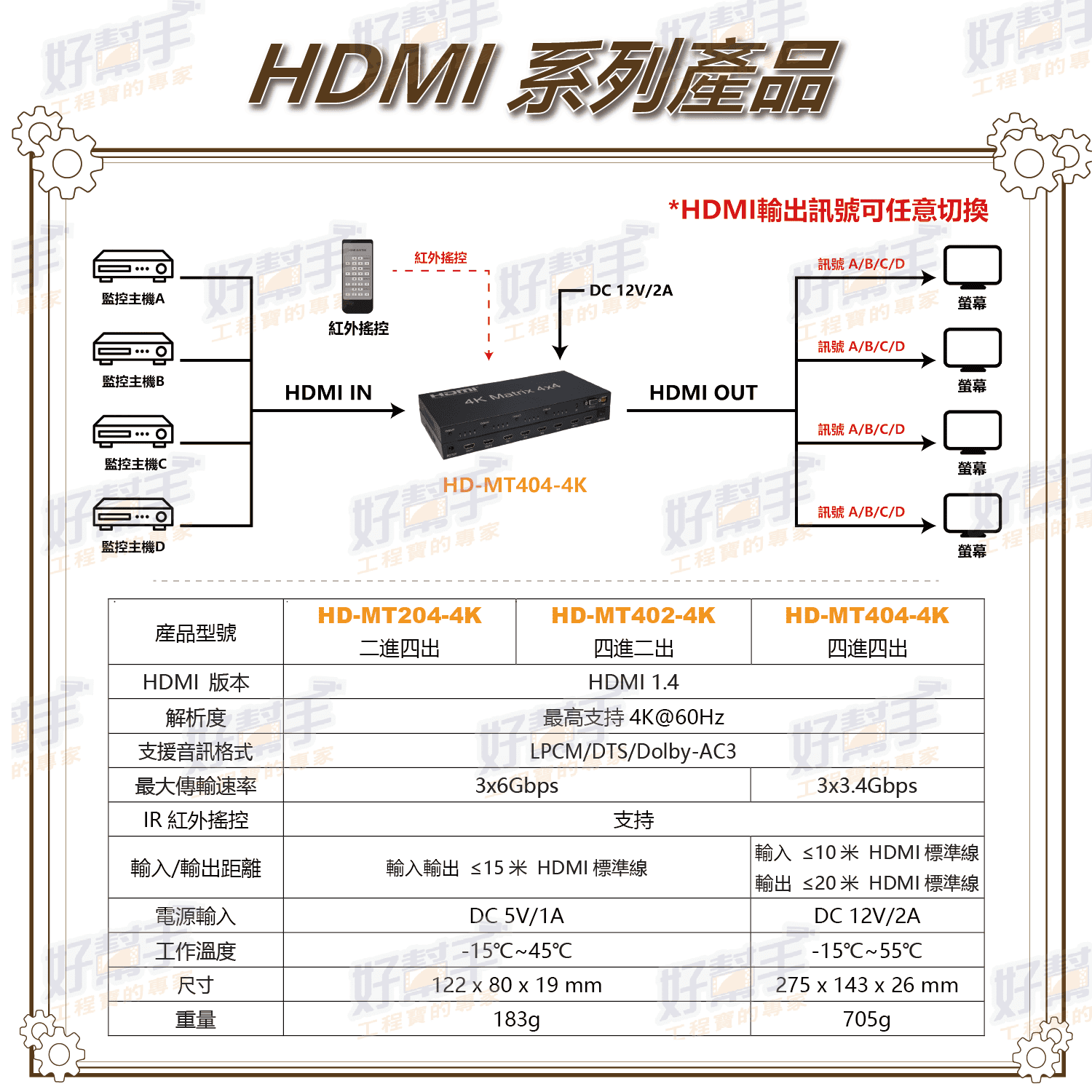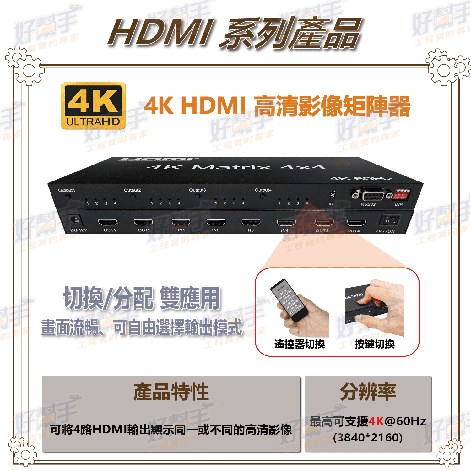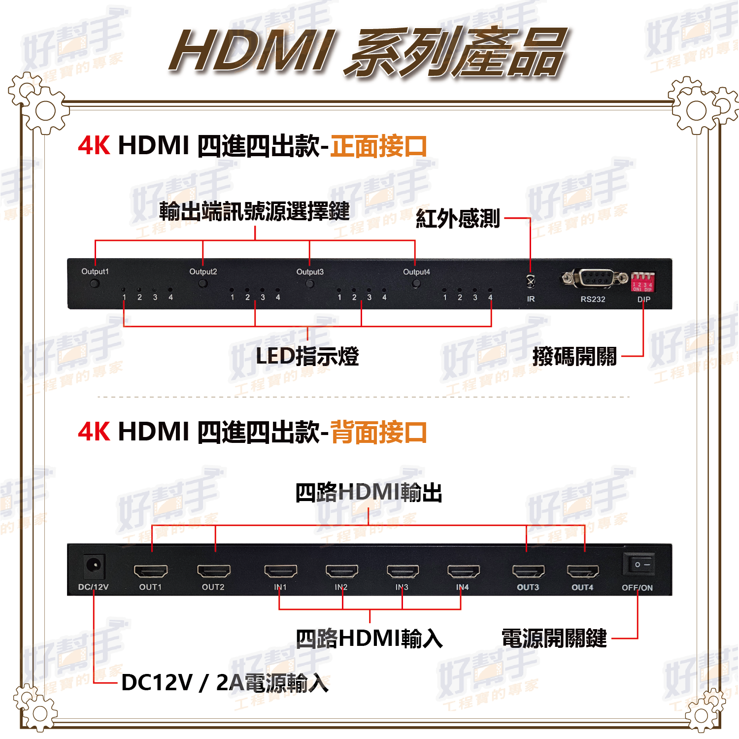 可將 4 路 HDMI 輸出顯示同一或不同的高清影像。