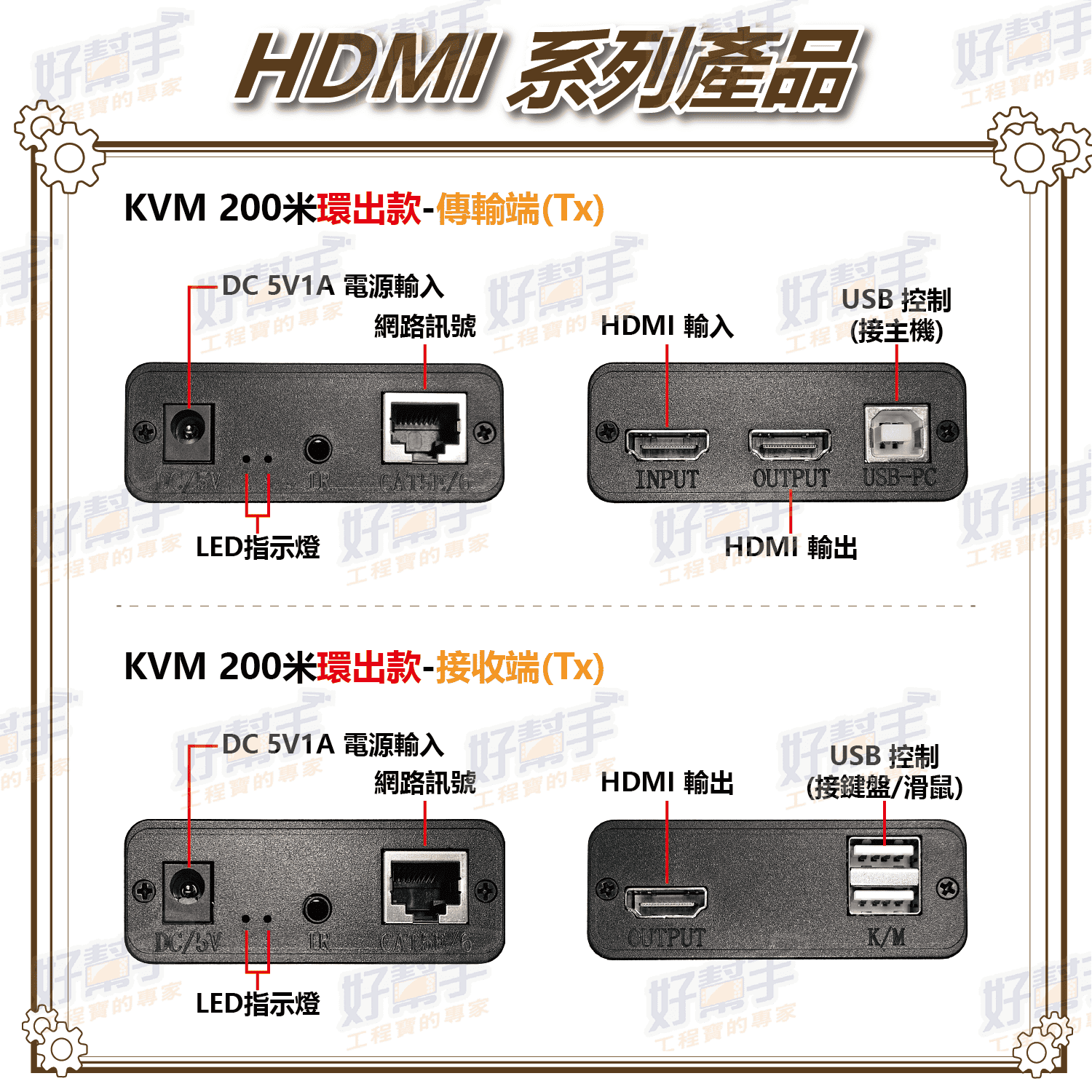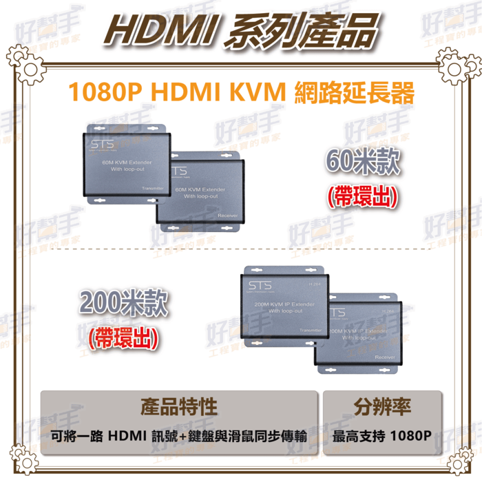 最遠可傳輸 200M,傳輸端另帶有 HDMI 影像輸出。