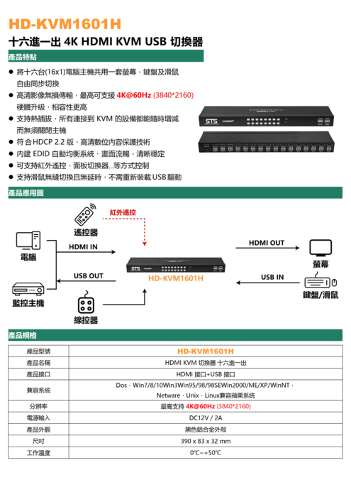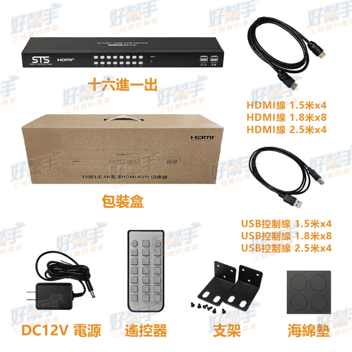 將十六台(16x1)電腦主機共用一套螢幕、鍵盤及滑鼠自由同步切換。