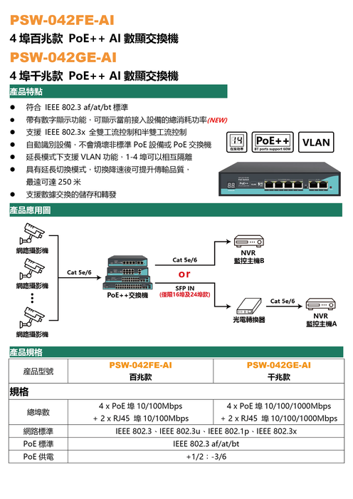 PSW-042FE/GE-AI_(4埠 PoE++ AI數顯交換機)產品規格書