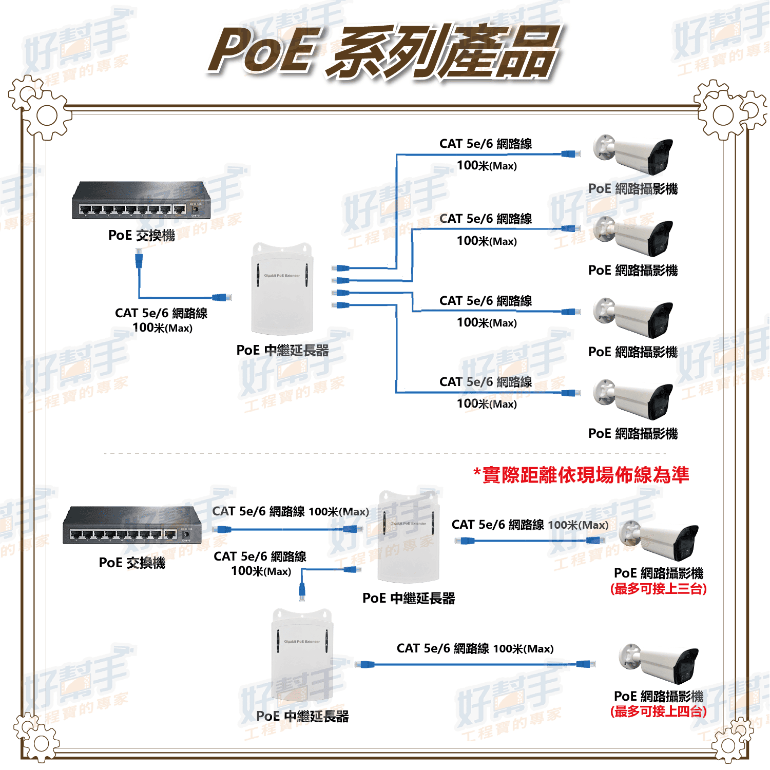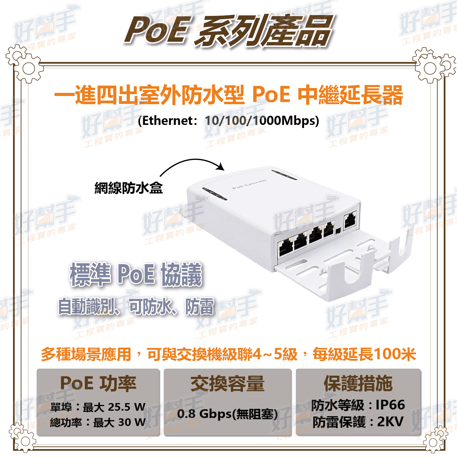 一進四出 戶外防水型 PoE 中繼延長器(千兆款)