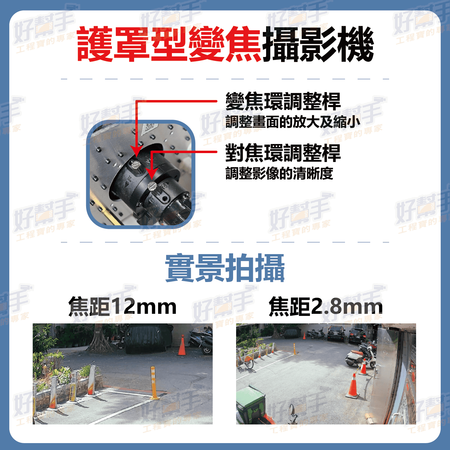定焦鏡頭(4/6/8mm)、手動變焦鏡頭(2.8~12mm)可選,支持麥克風收音。