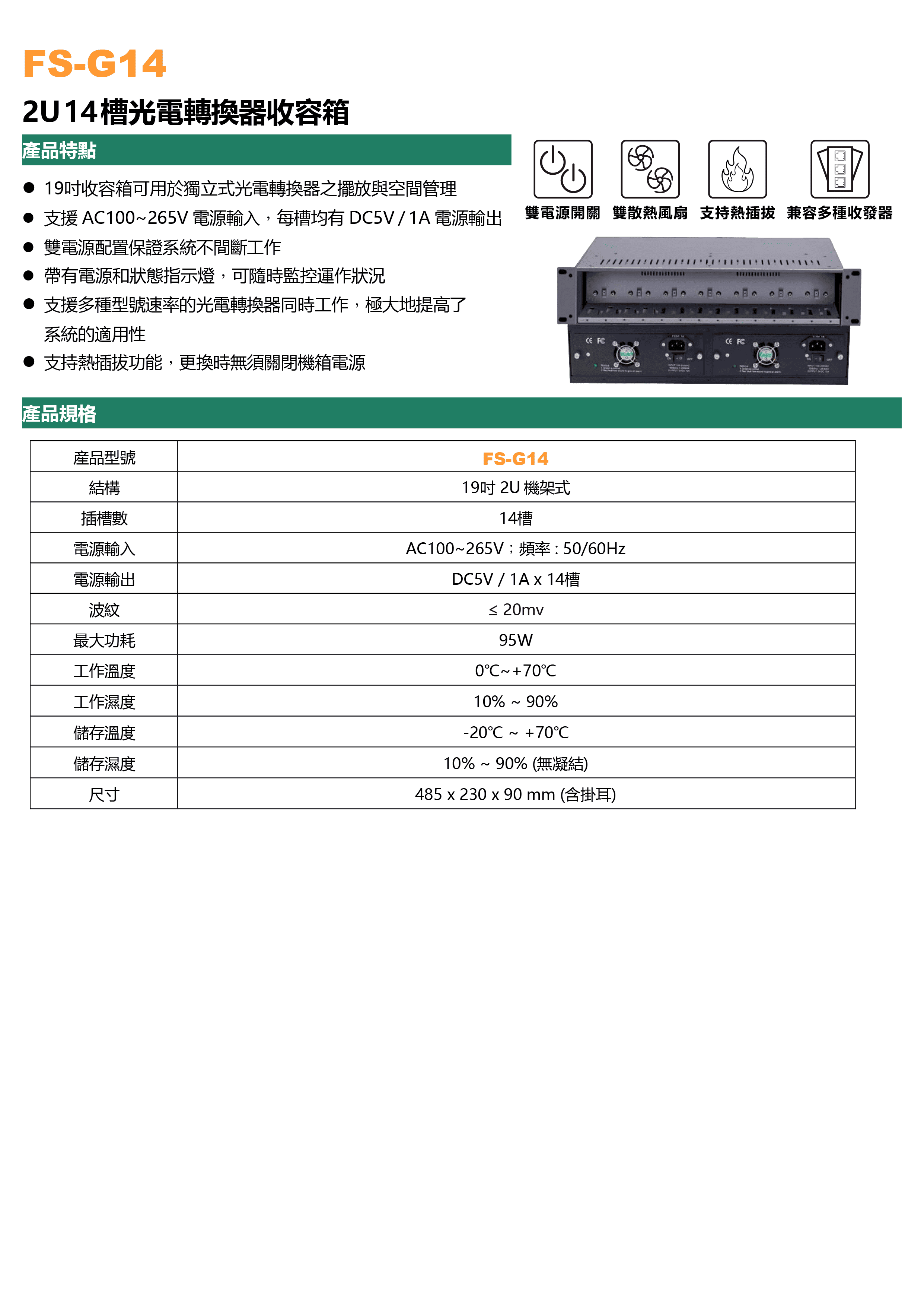 FS-G14_(2U 14槽光電轉換器收容箱)產品規格書