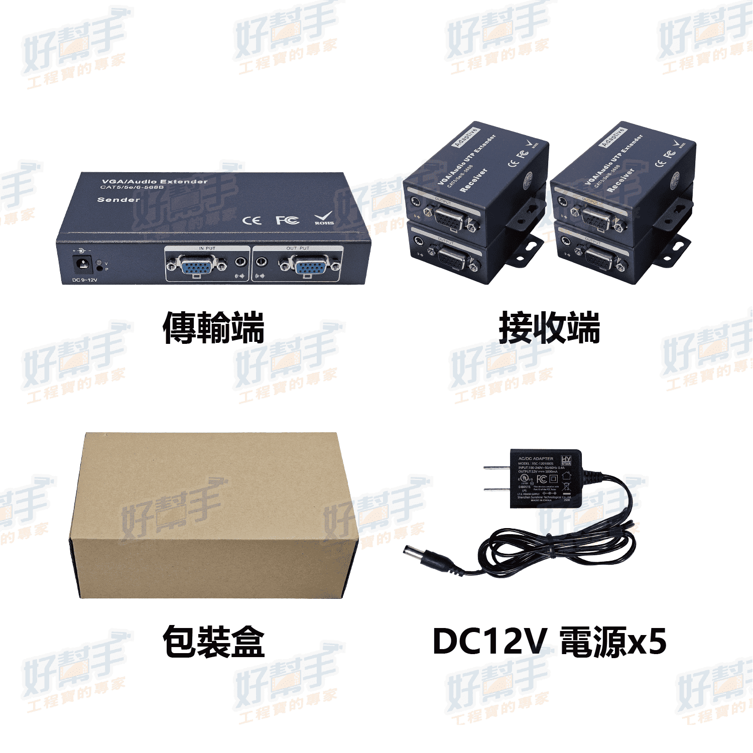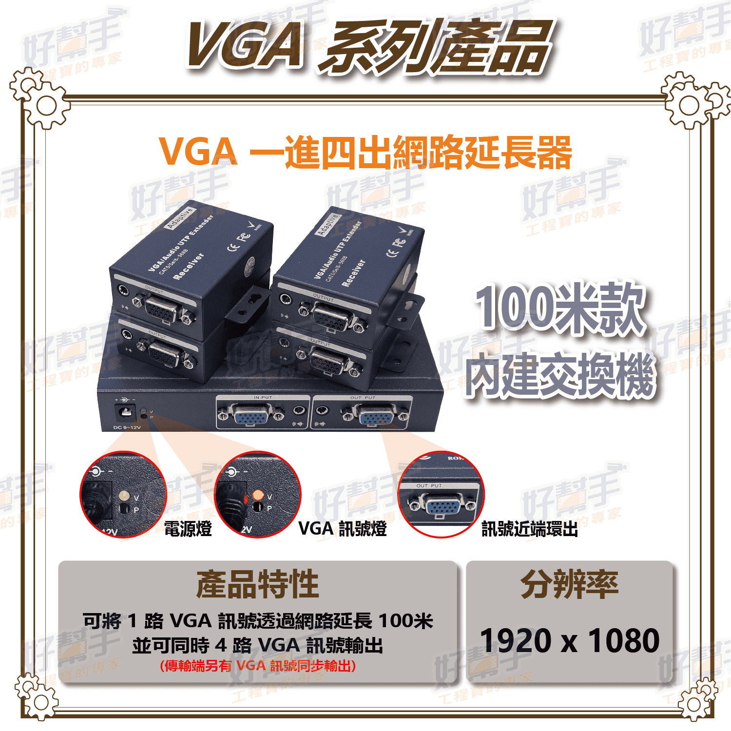 可將一路 VGA 訊號透過網線延長傳輸,最遠可傳輸100米並可同時輸出四路 VGA 訊號。