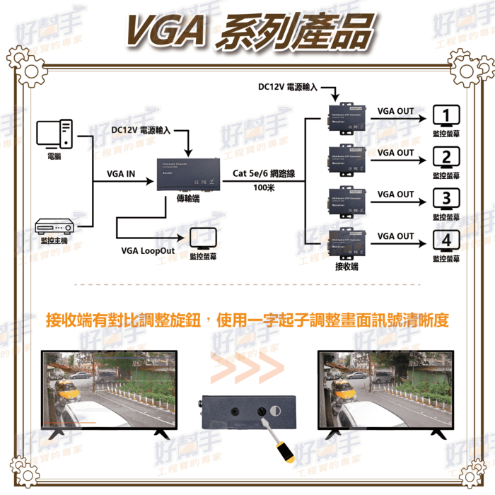 👉VGA 一進四出 100米 網路延長器功能介紹🎥