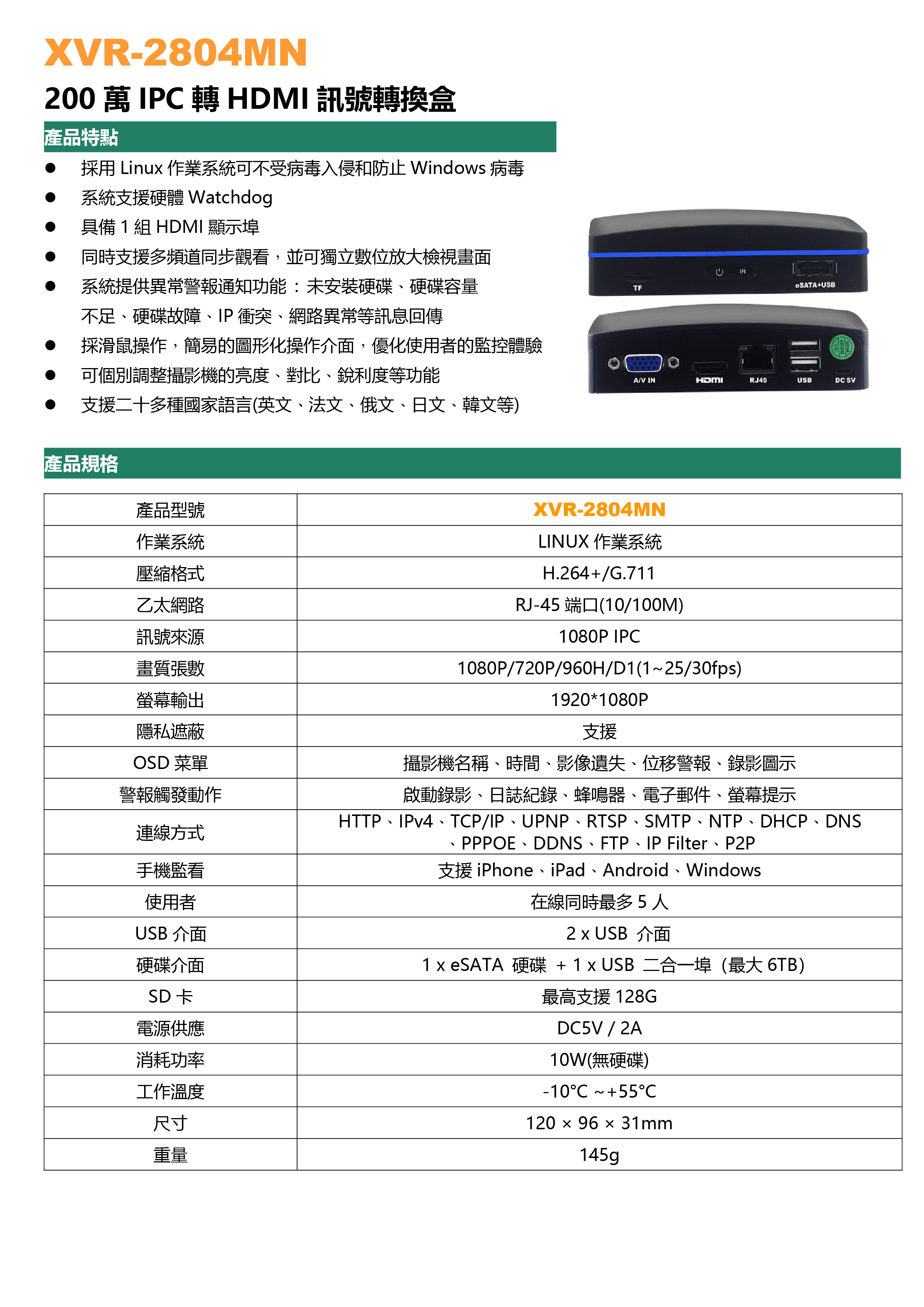 200 萬 IPC 轉 HDMI 訊號轉換盒