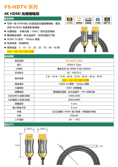 4K HDMI 光纖傳輸線