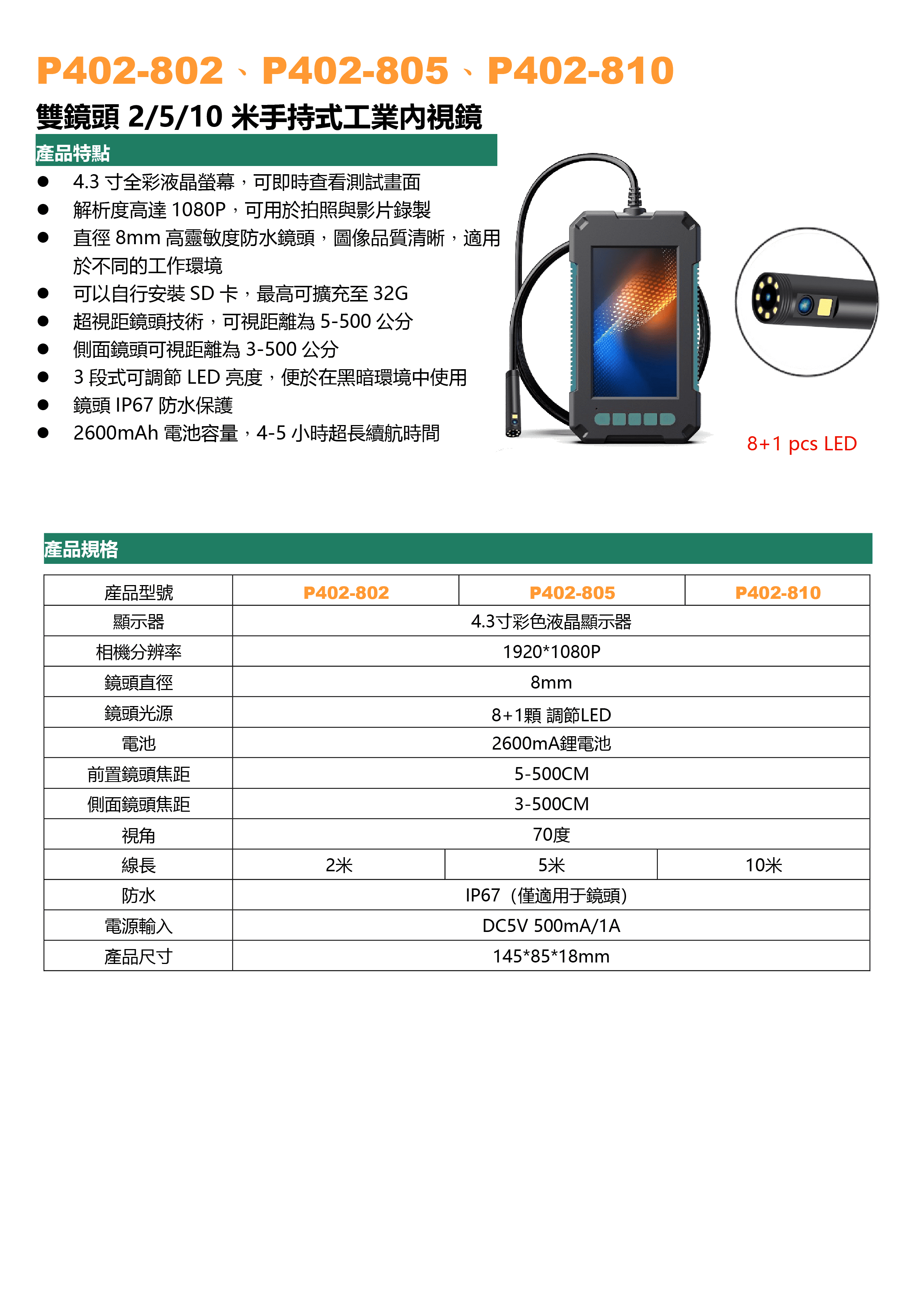 P402-805_(雙鏡頭手持式工業內視鏡)產品規格書