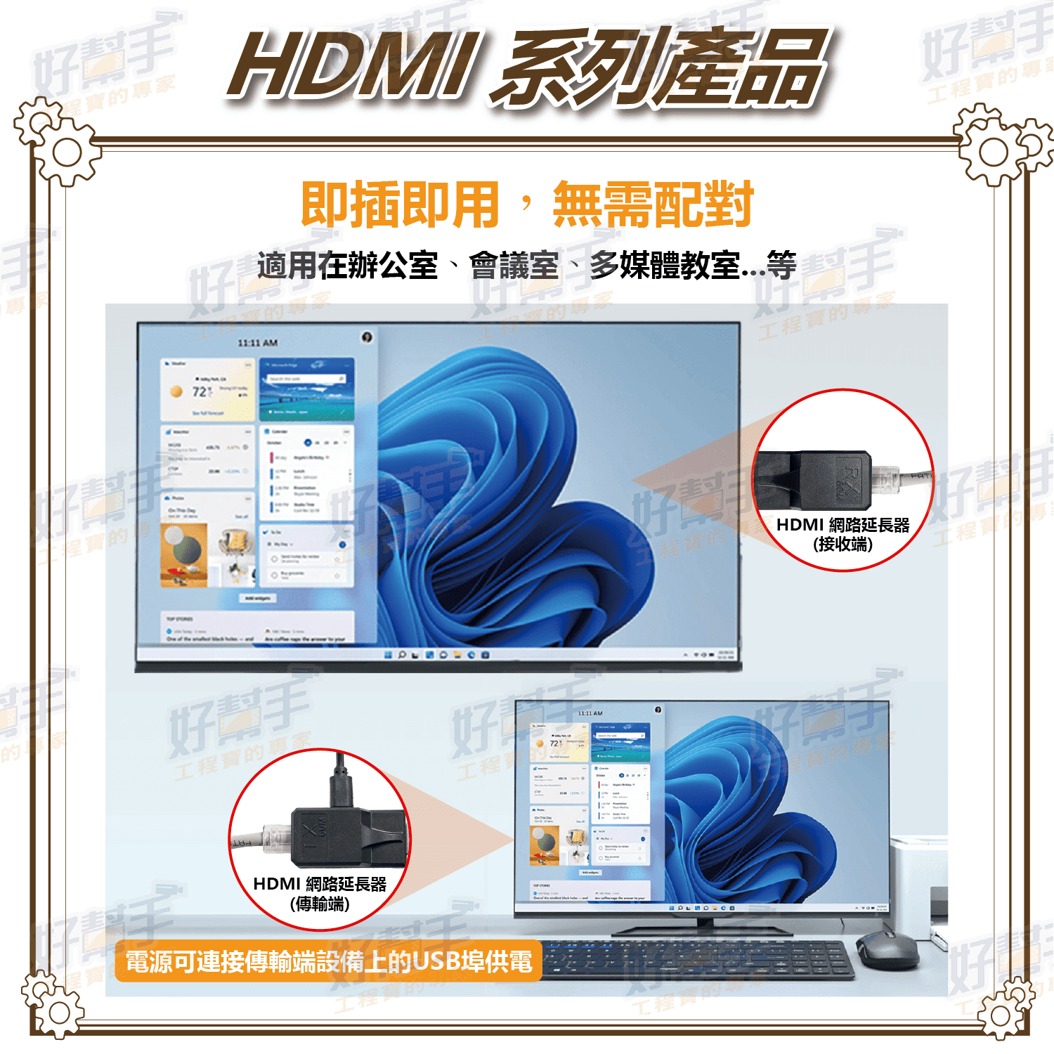 HDMI 高清傳輸距離 60米,單網線傳輸。