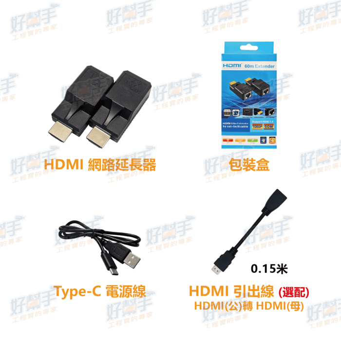 另有HDMI(公) 轉 HDMI(母)-0.15米引出線。