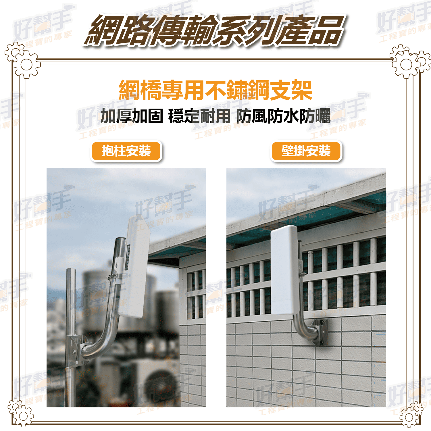 - 內置高增益定向天線,訊號集中傳輸且穿透力高。