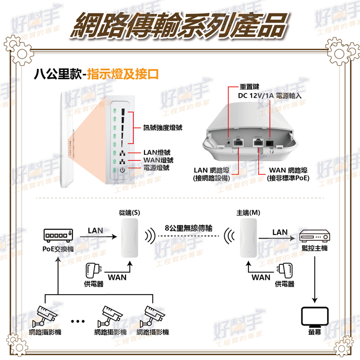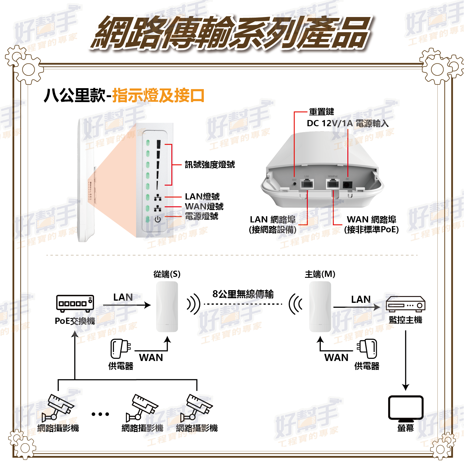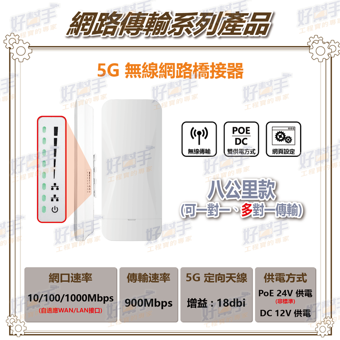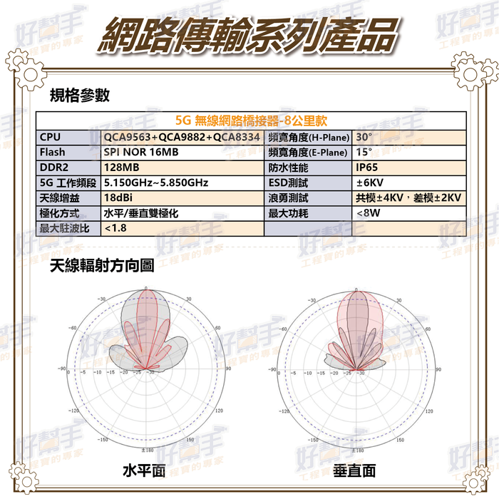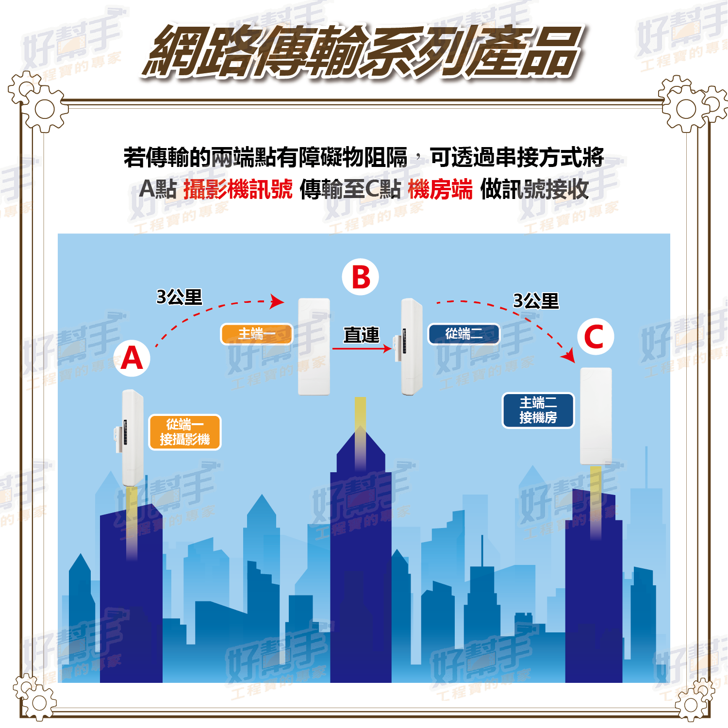 - 內置高增益定向天線,訊號集中傳輸且穿透力高。