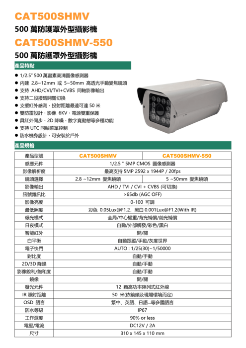 CAT500SHMV_500萬防護罩外型攝影機產品規格書