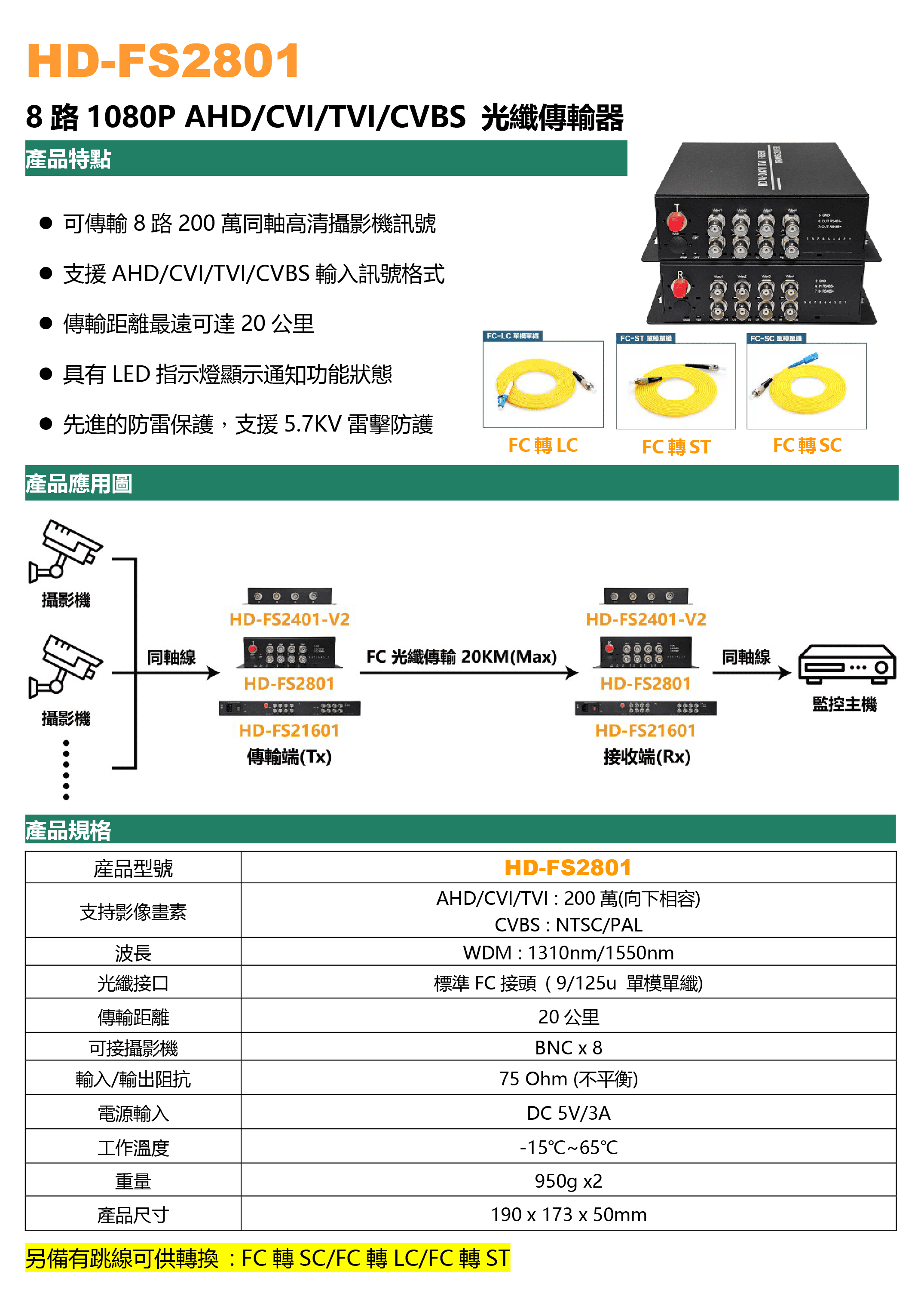 HD-FS2801_(8路光纖傳輸器)產品規格書