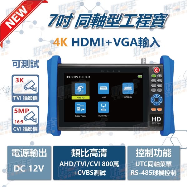 800 萬四合一測試:支援 AHD/CVI/TVI/CVBS 訊號格式,可相容多種攝影機測試