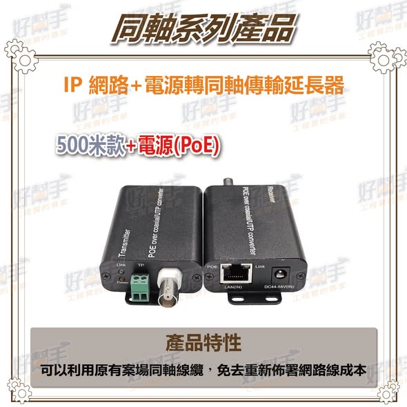 搭配此款延長器可延用案場既有同軸線纜!輕鬆升級為IP 網路攝影機✨