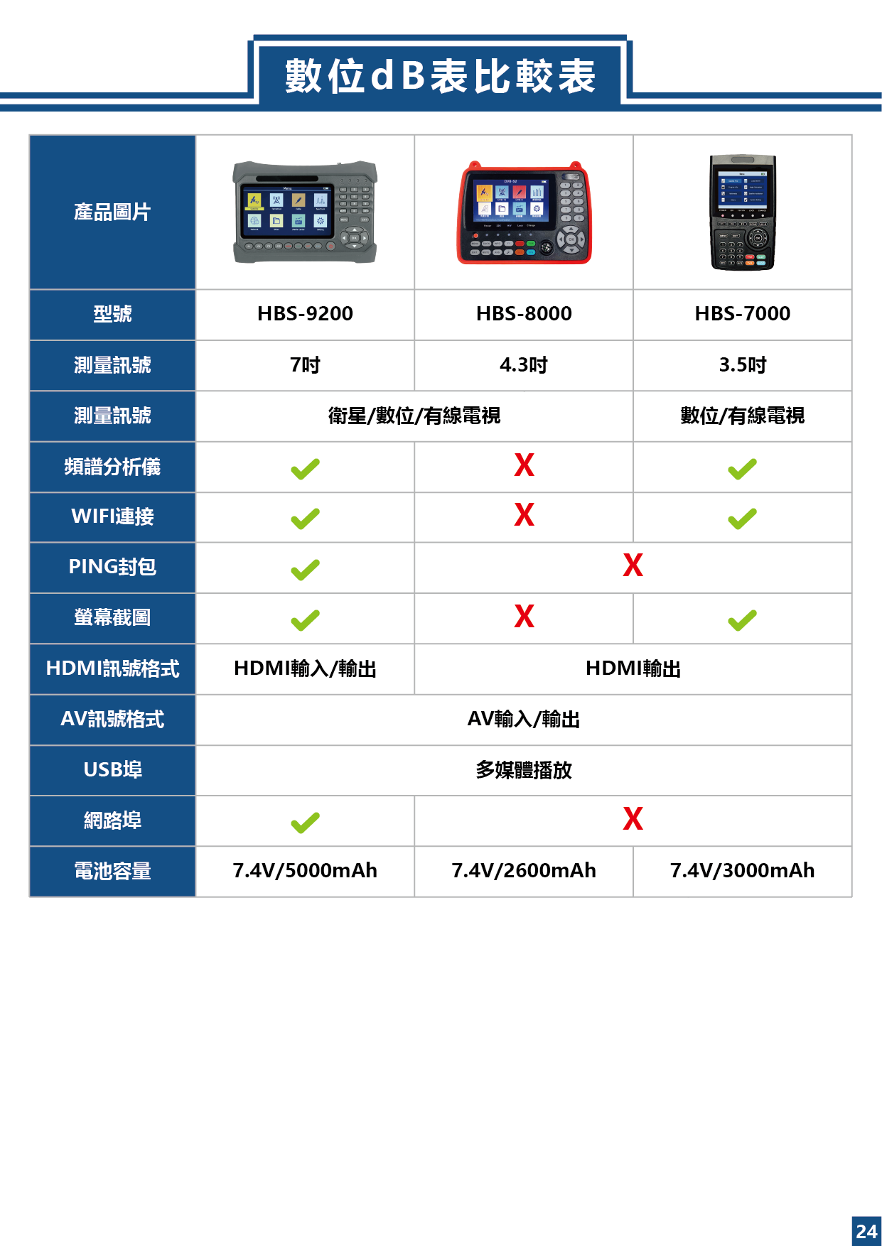 數位dB表-功能比較表